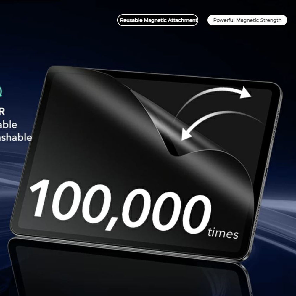 • The film attaches magnetically to your tablet's screen, so you can detach it whenever you want. It's wonderful! You can mount and detach it in just a few seconds.