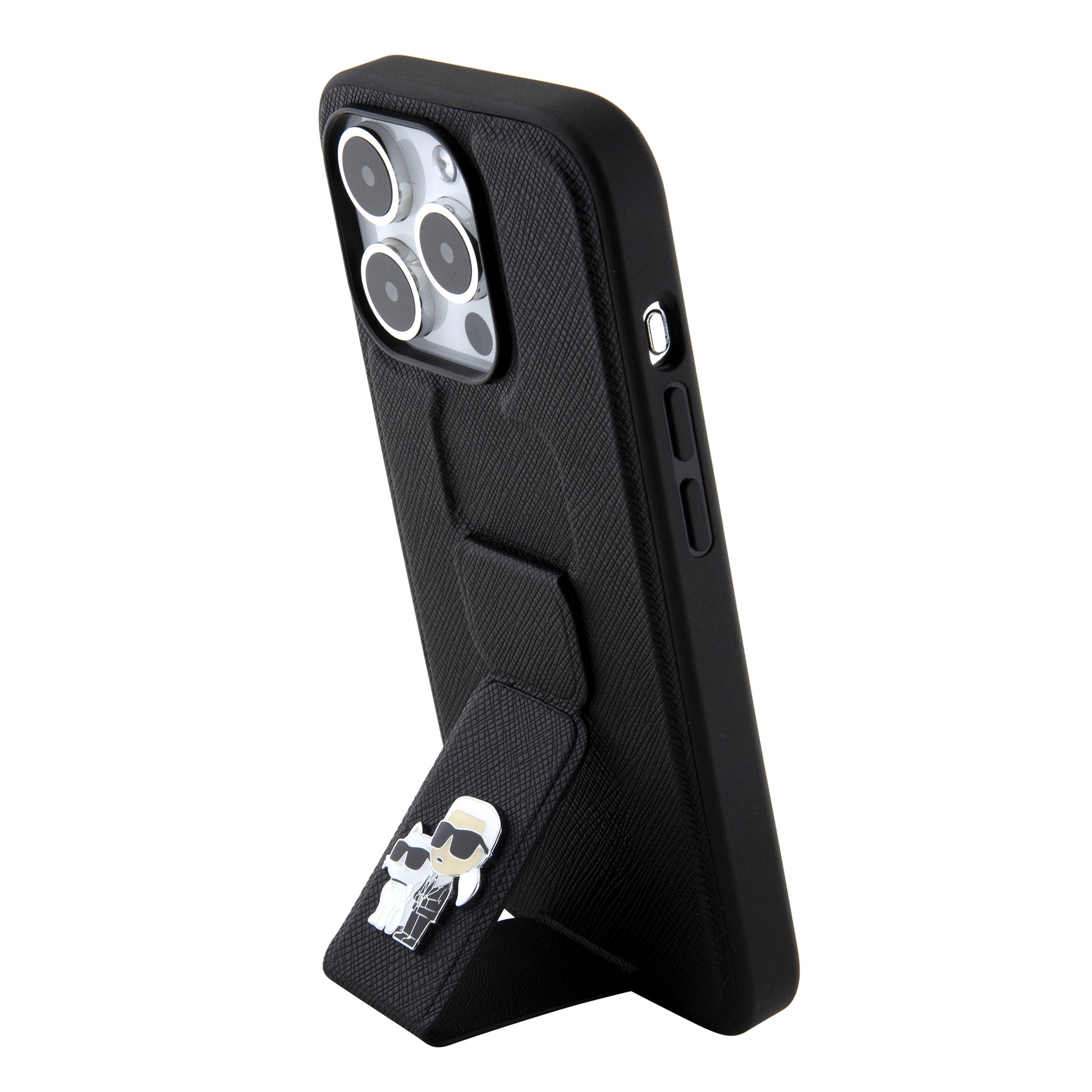 MagSafe Case for Apple iPhone 15 Pro, Karl Lagerfeld, Saffiano Gripstand Karl & Choupette, Black
