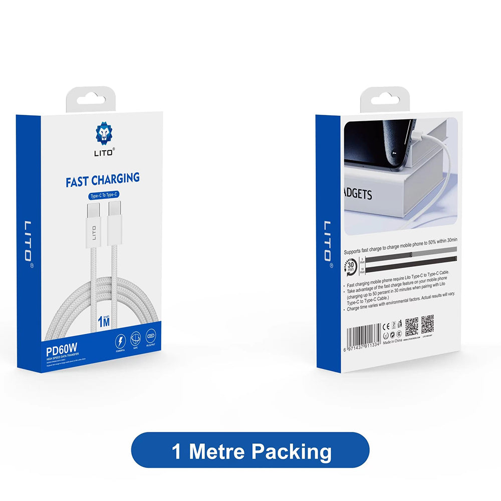 USB-C Data and Charging Cable - USB-C Lito LD04CC, 60W, 1m, White
