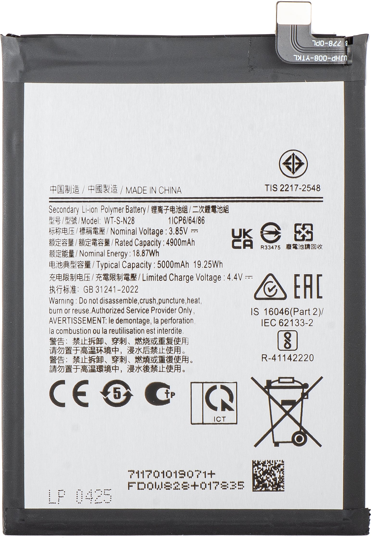 Model akumulátoru | WT-S-N28 |