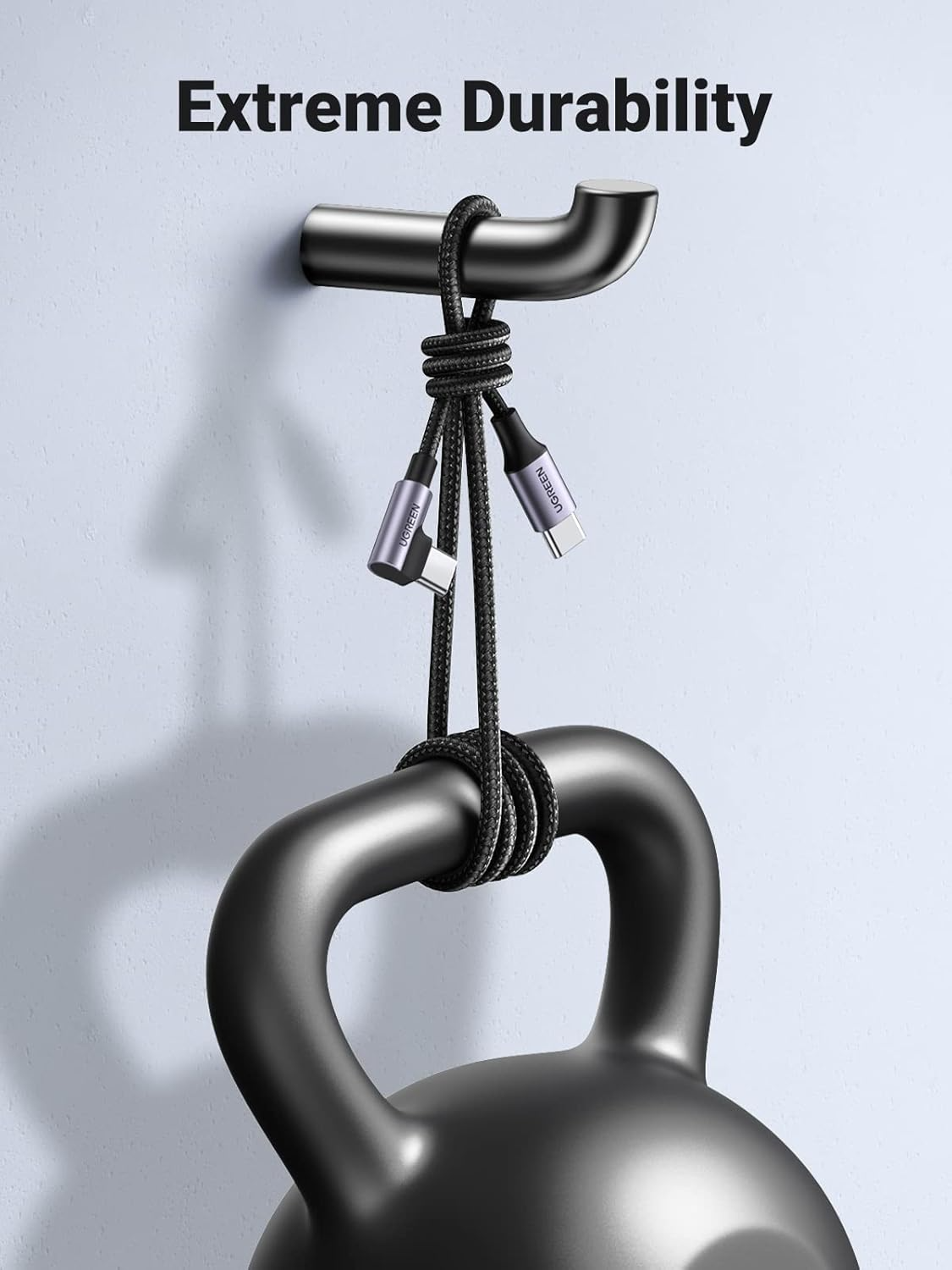 Kabel UGREEN USB-C na USB-C s inovativním designem ve tvaru "L" pod úhlem 90 stupňů je ideálním řešením pro pohodlí a komfort.