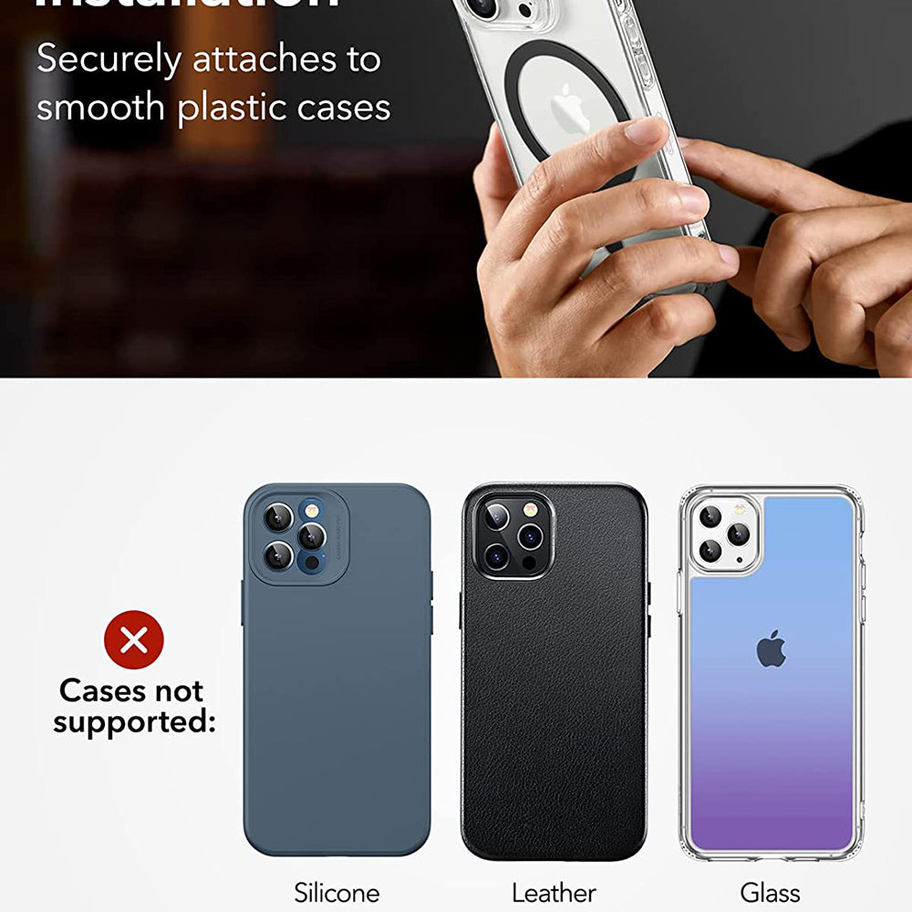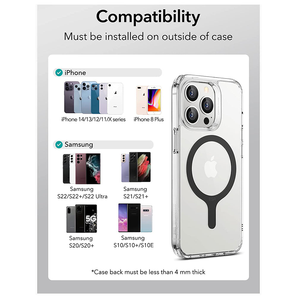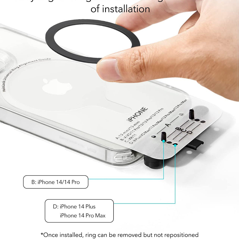 Balíček obsahuje dvě sady pro montáž kroužku, aby jste ho mohli správně umístit. Vše je tak jednoduché s novým adaptérem HaloLock od ESR.