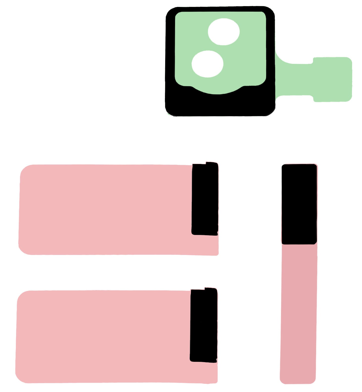 Lepidlo určené pro uchycení přední kamery k rámu telefonu.