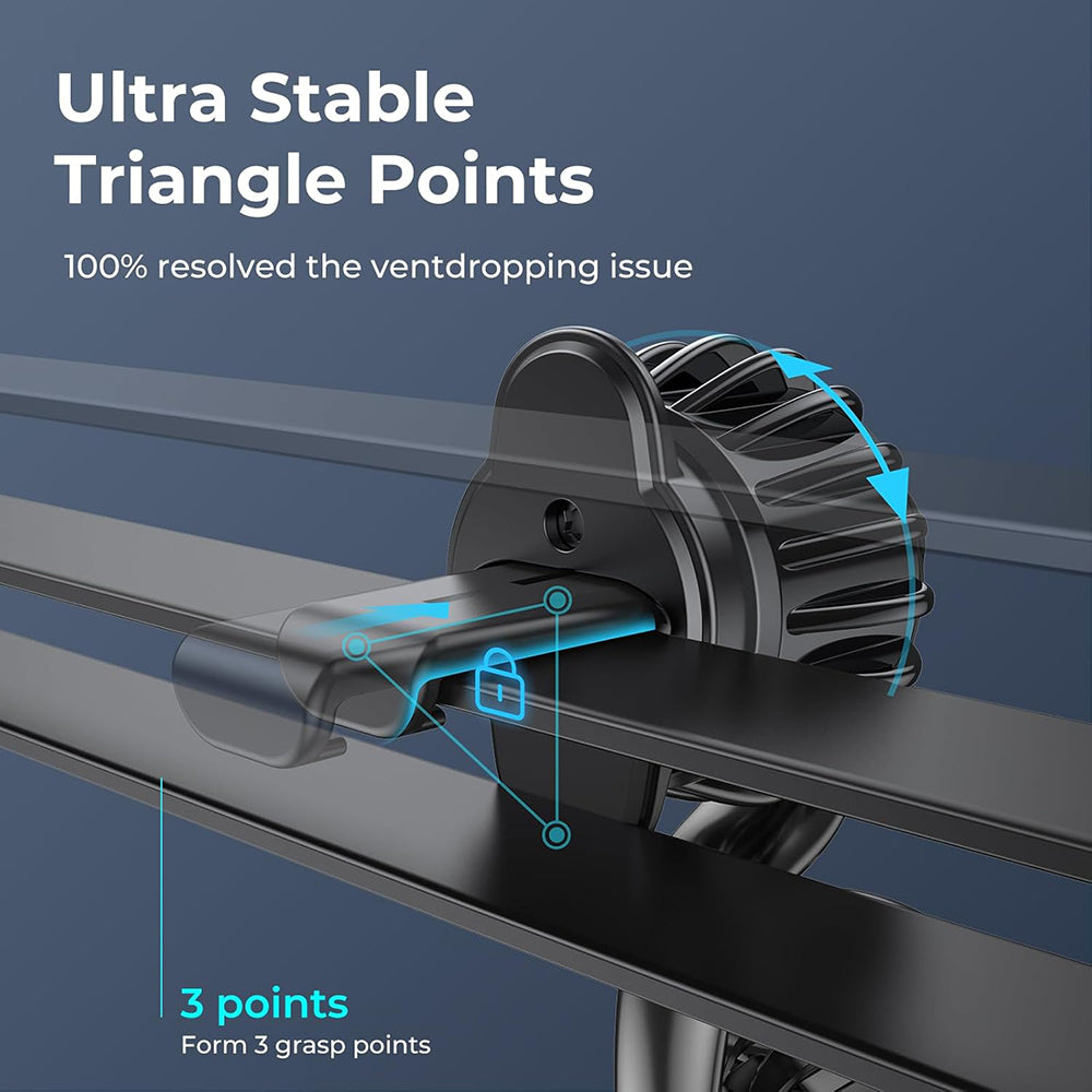 Unikátní design zakřiveného ramene zabraňuje blokování ventilace a poskytuje nejlepší viditelnost během jízdy. Telefon lze otáčet a naklánět o 360 stupňů, takže neblokuje ani ventilaci, ani palubní desku.
