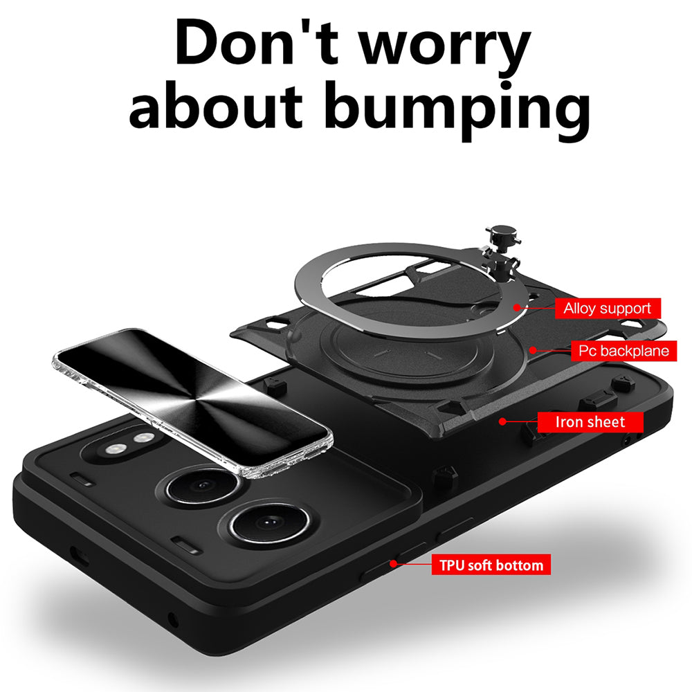 Obal má ochranu pro kamery, pečlivě dokončené výřezy a flexibilní kroužek pro podporu telefonu při sledování seriálu.
